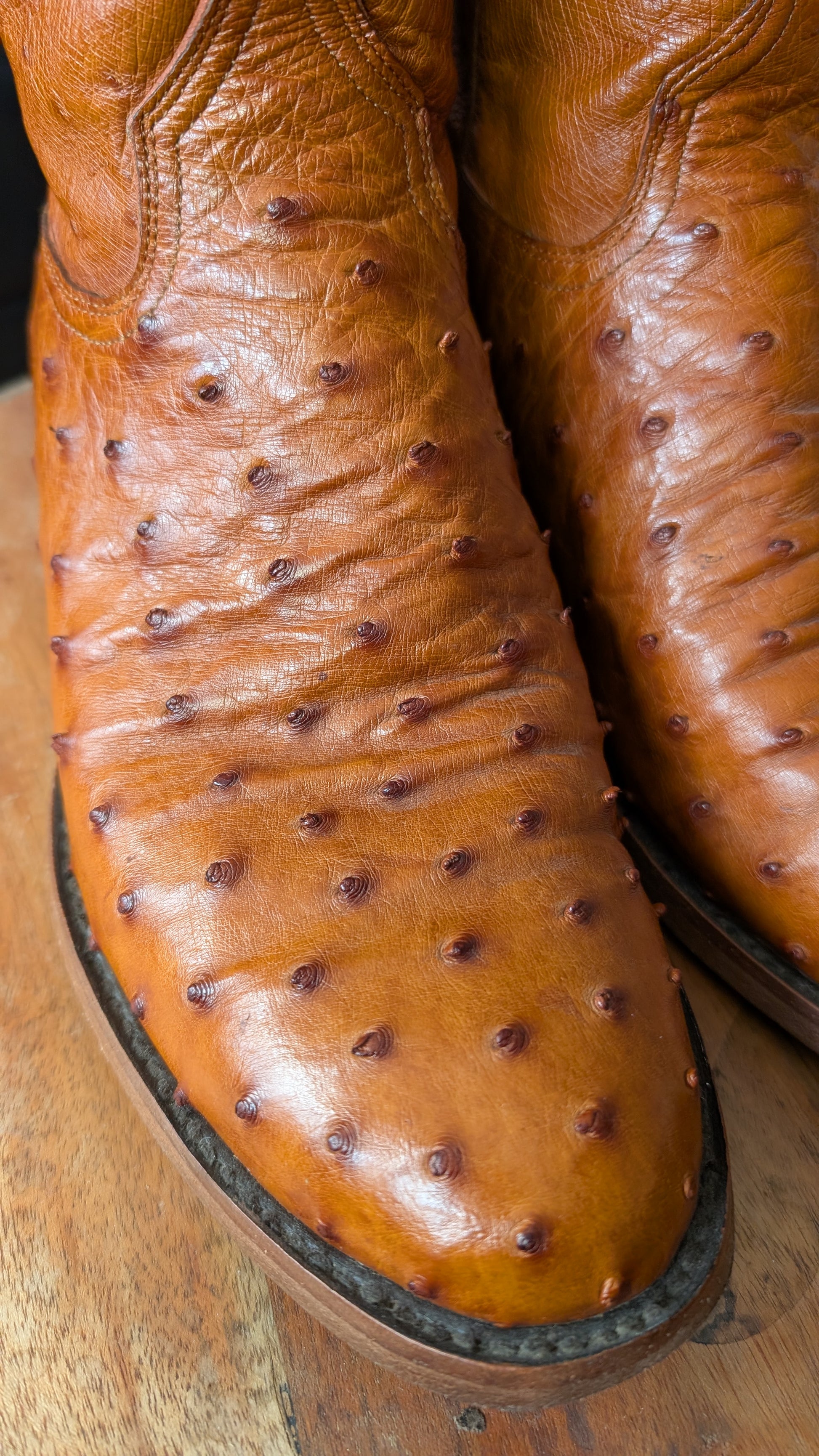 This is a full ostrich boot from Chisos. Full quill ostrich foot and smooth ostrich tops. There is also a Chisos removable insole inside